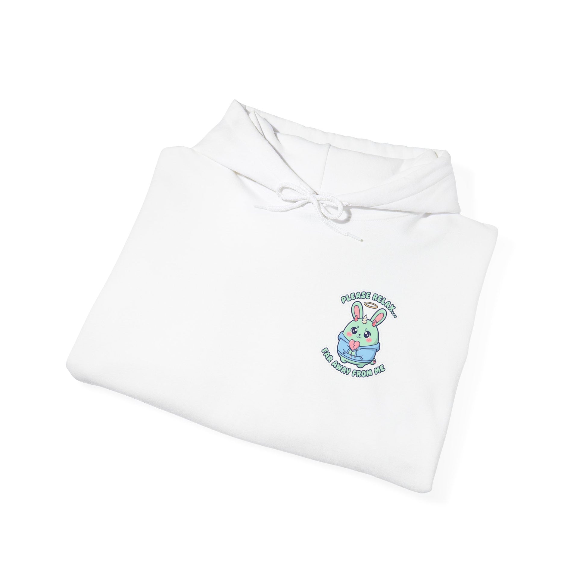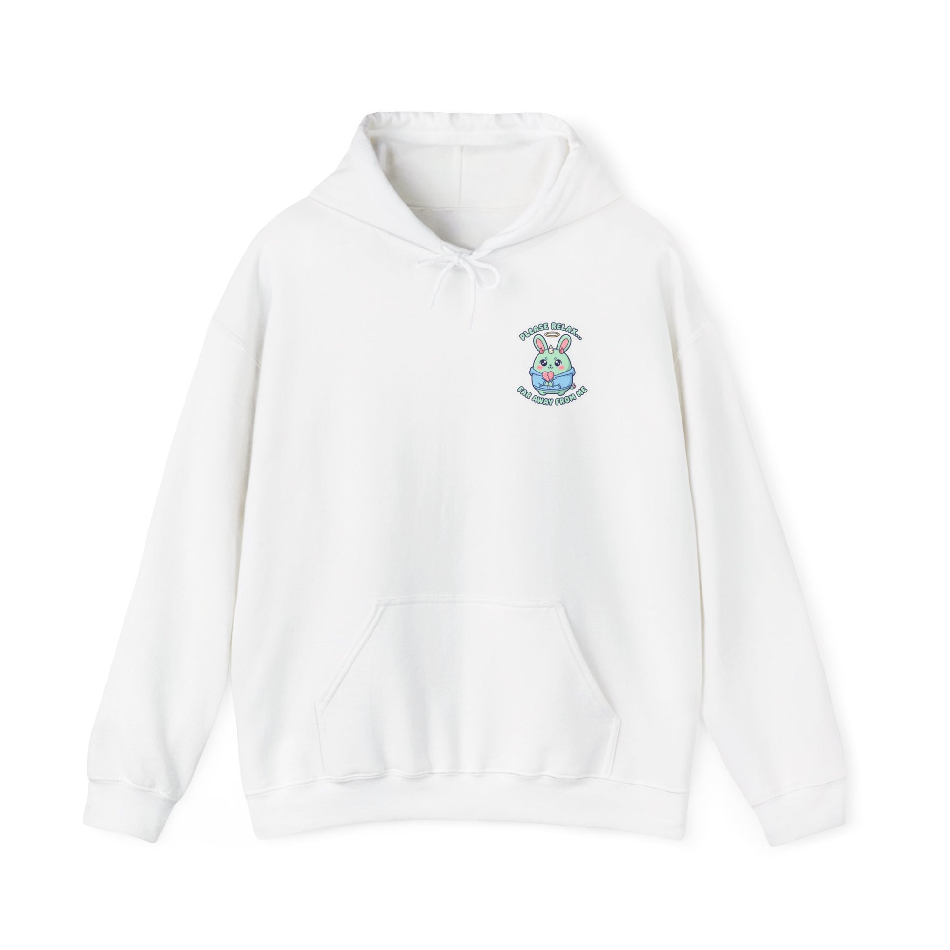 Mint-and-blush kawaii rabbit with a cheeky, threatening caption rendered in rounded, bouncy lettering—soft pastels and a cute-but-edgy attitude that fits the “Soft Threat” sarcasm trend. The small chest artwork pairs bubbly character design with a politely menacing line, giving off playful boundary-setting energy that photographs well for social feeds. Wear it as an everyday cozy layer to signal low-key sass: comfy enough for lounging, styled with streetwear or soft-grunge pieces for an ironic look. Product features - 50% cotton, 50% polyester medium-heavy fabric (8.0 oz/yd²) - Drawstring hood with color-matched woven cord - Kangaroo pouch pocket - DTF sleeve and wrist prints with DTG main prints - Without side seams (tubular knit) Care instructions - Tumble dry: medium - Iron, steam or dry: low heat - Do not dryclean - Machine wash: cold (max 30C or 90F) - Non-chlorine: bleach as needed