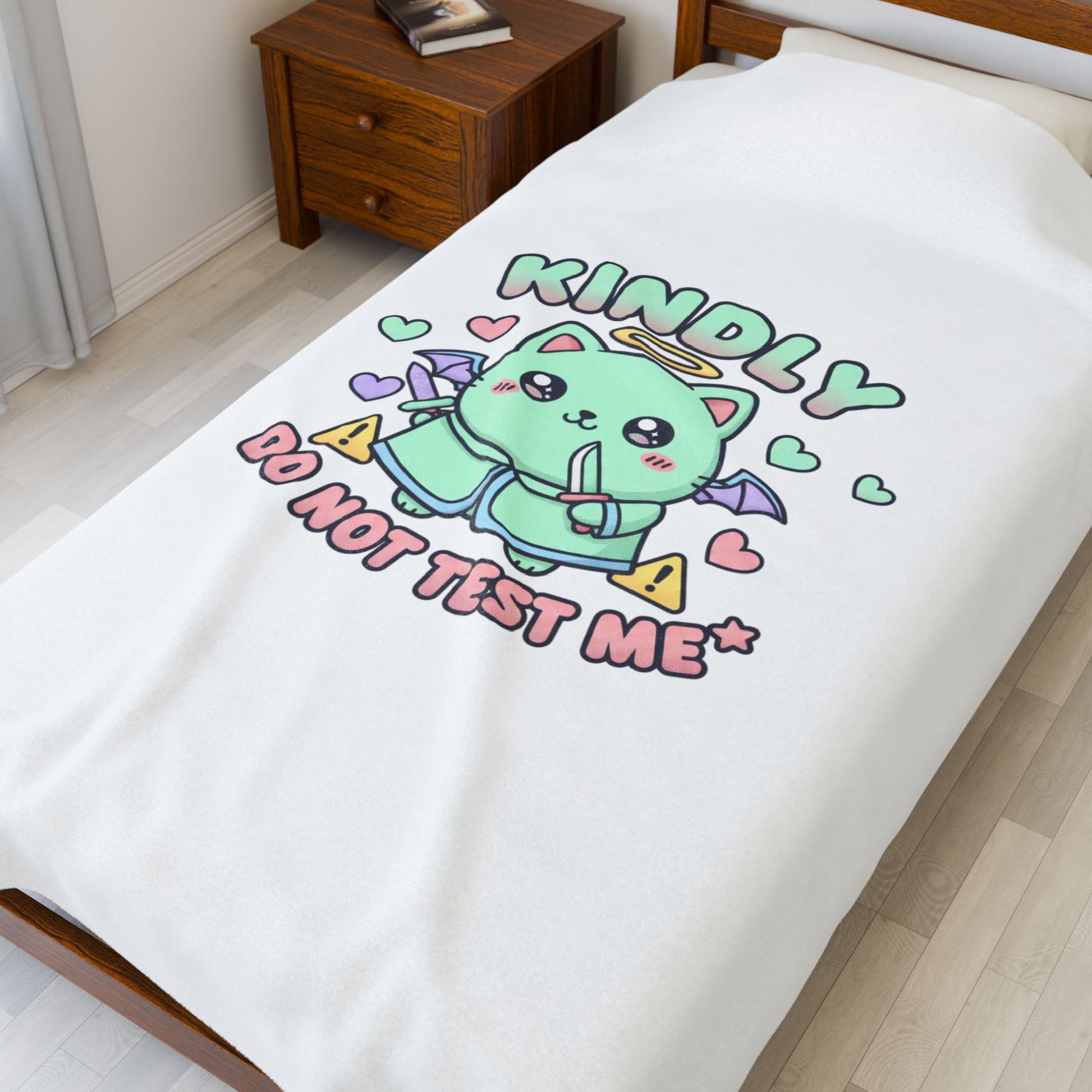 Kindly Do Not Test Me Plush Blanket | Kawaii Soft Threat, Pastel Cute Menacing
