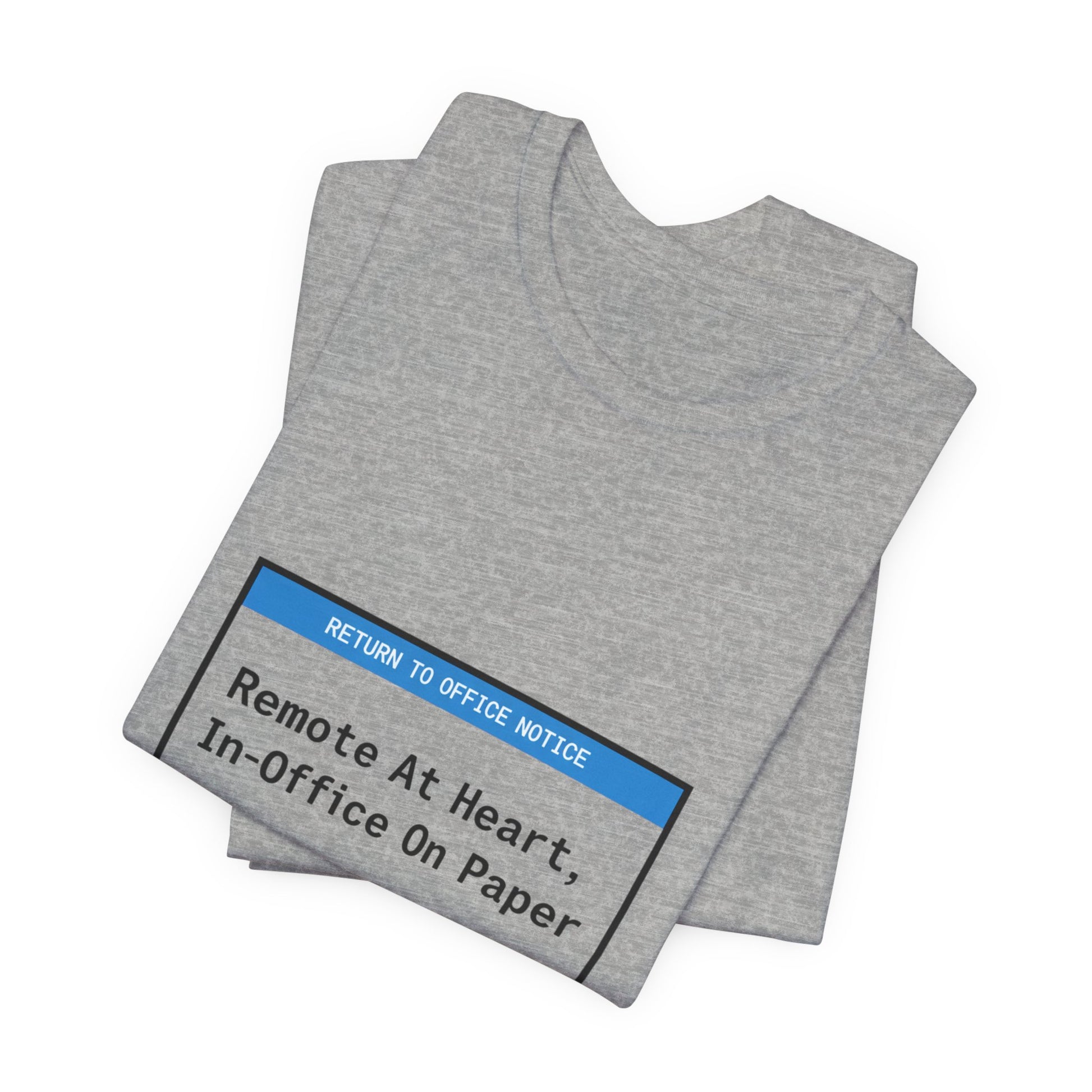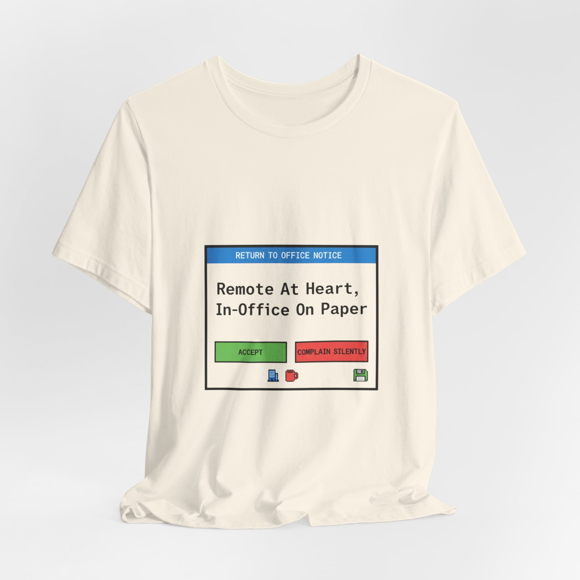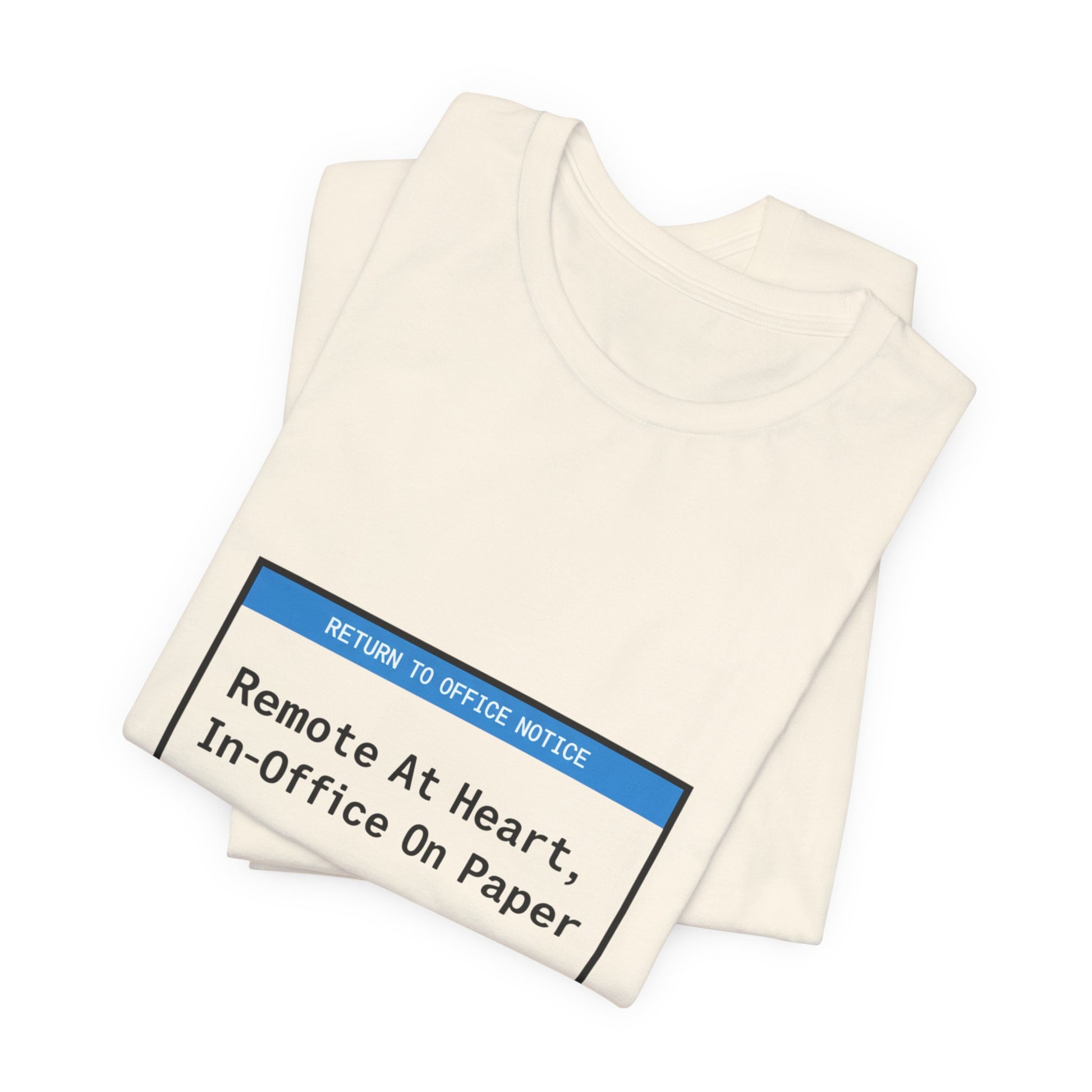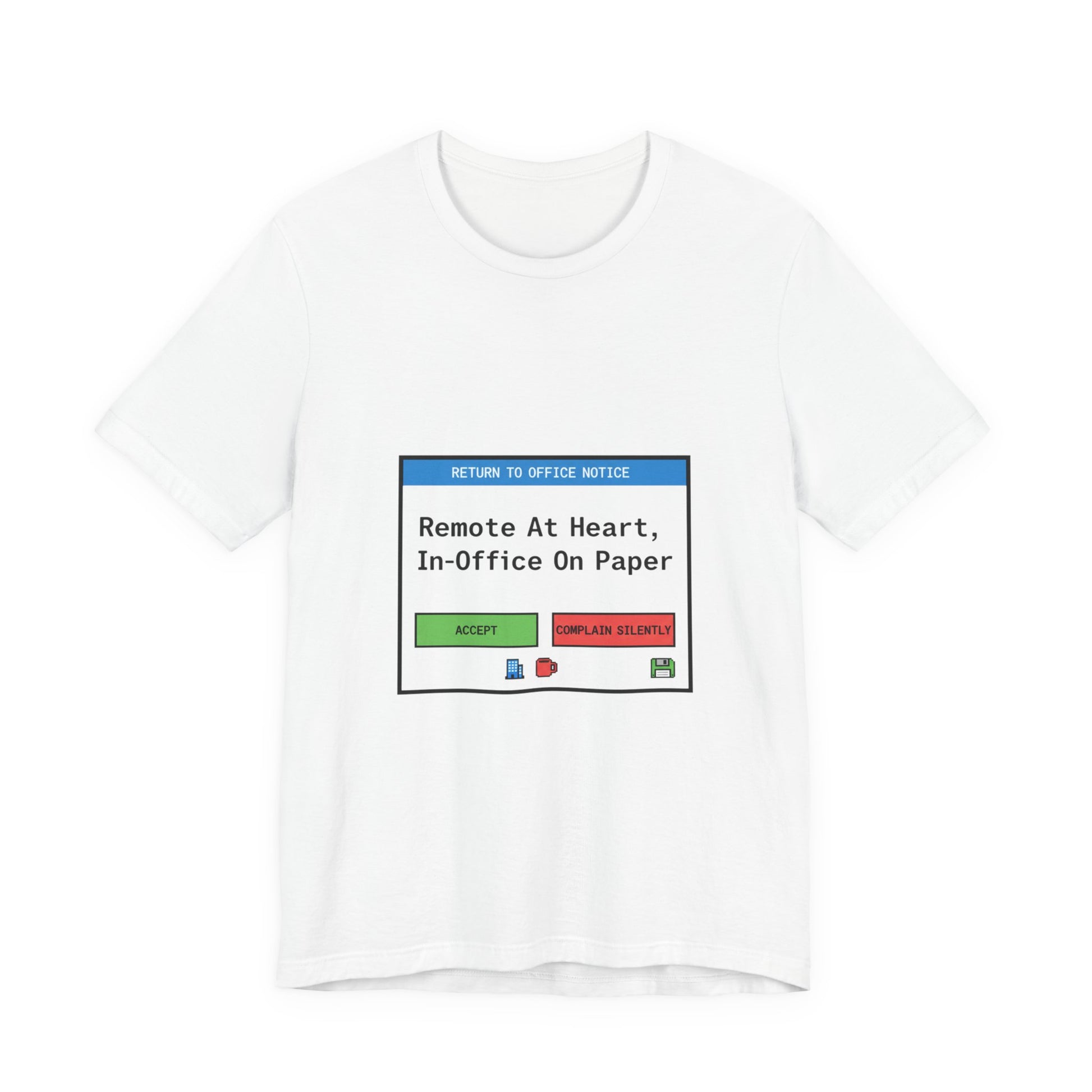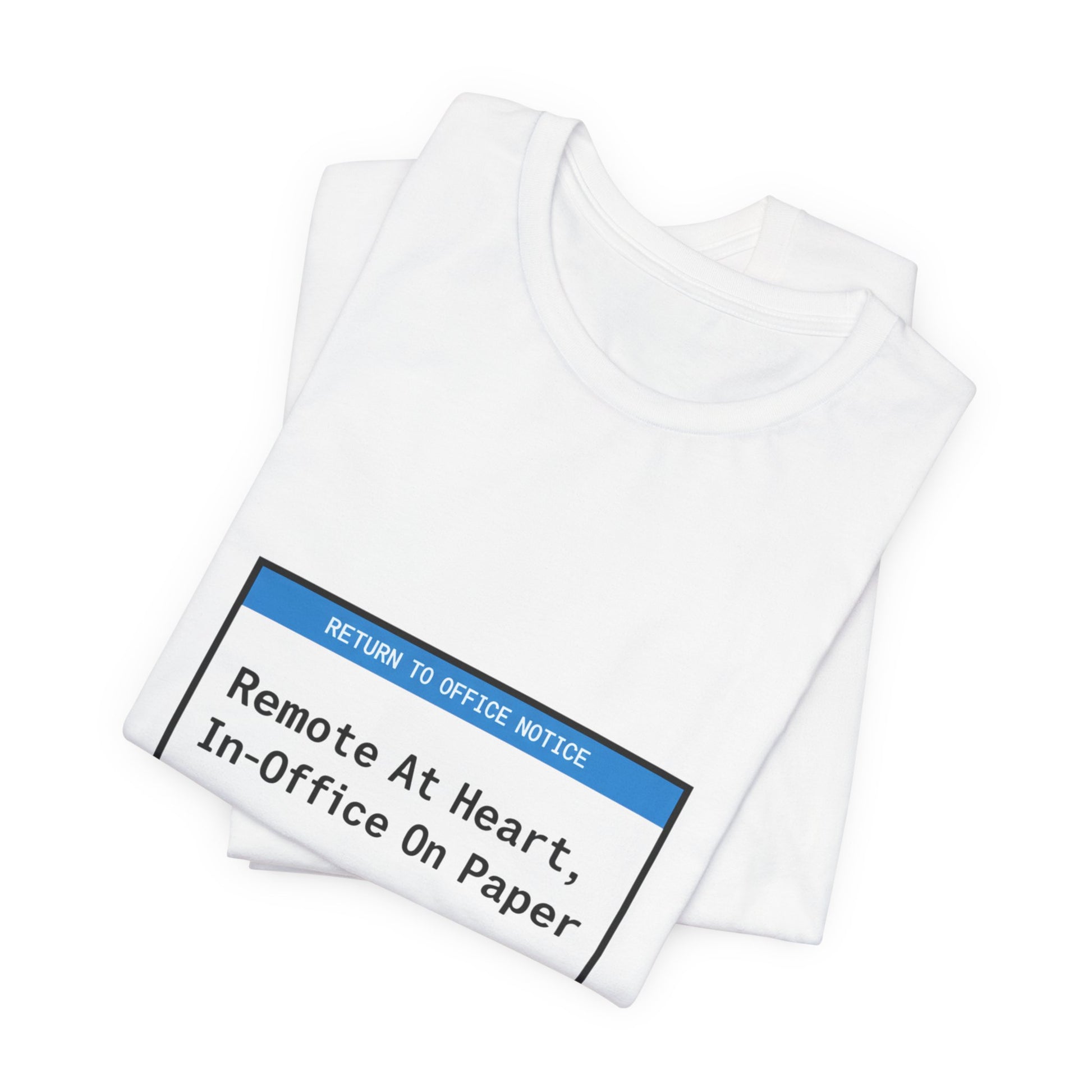 Remote At Heart In-Office On Paper Tee | 90s Computer Graphics, Corporate Satire