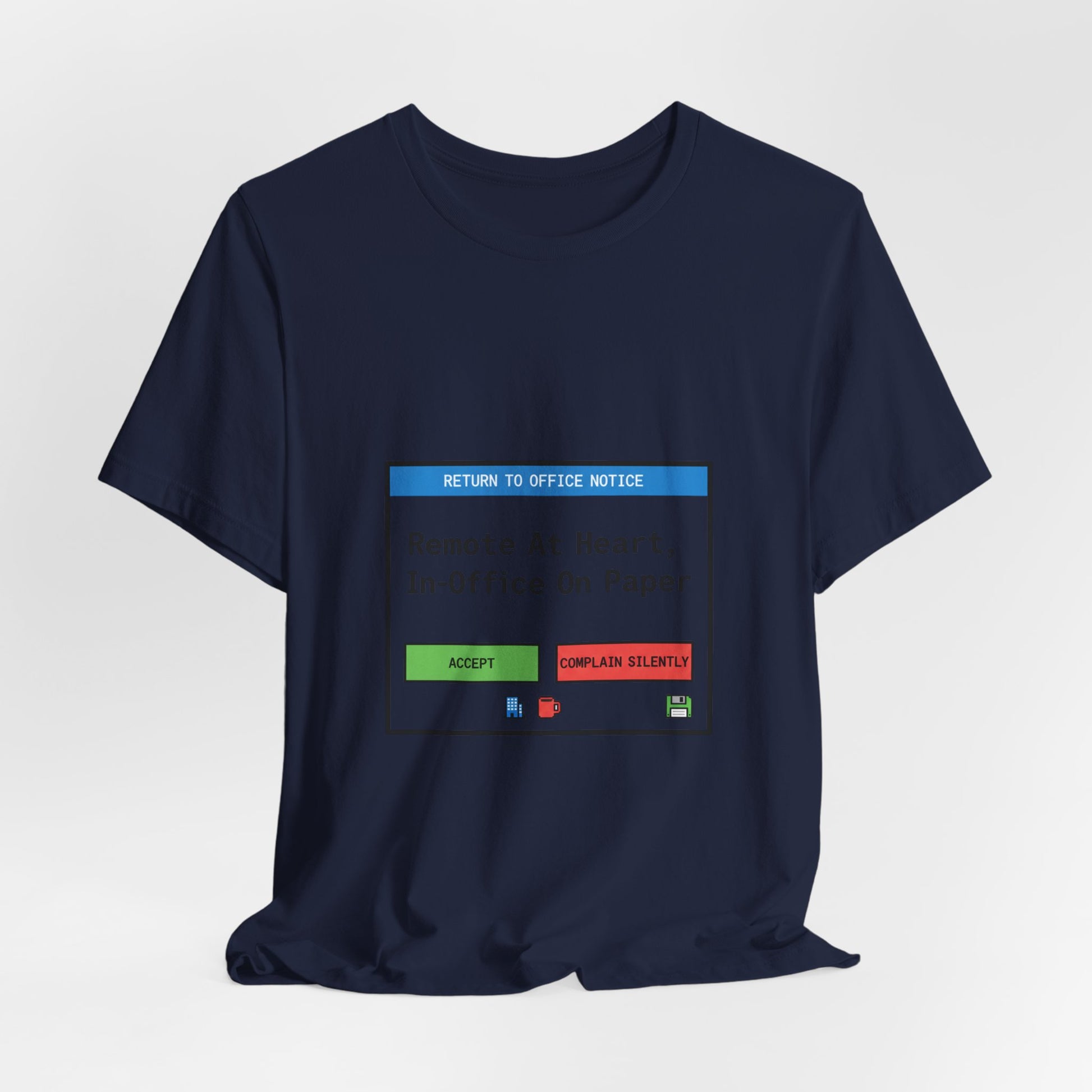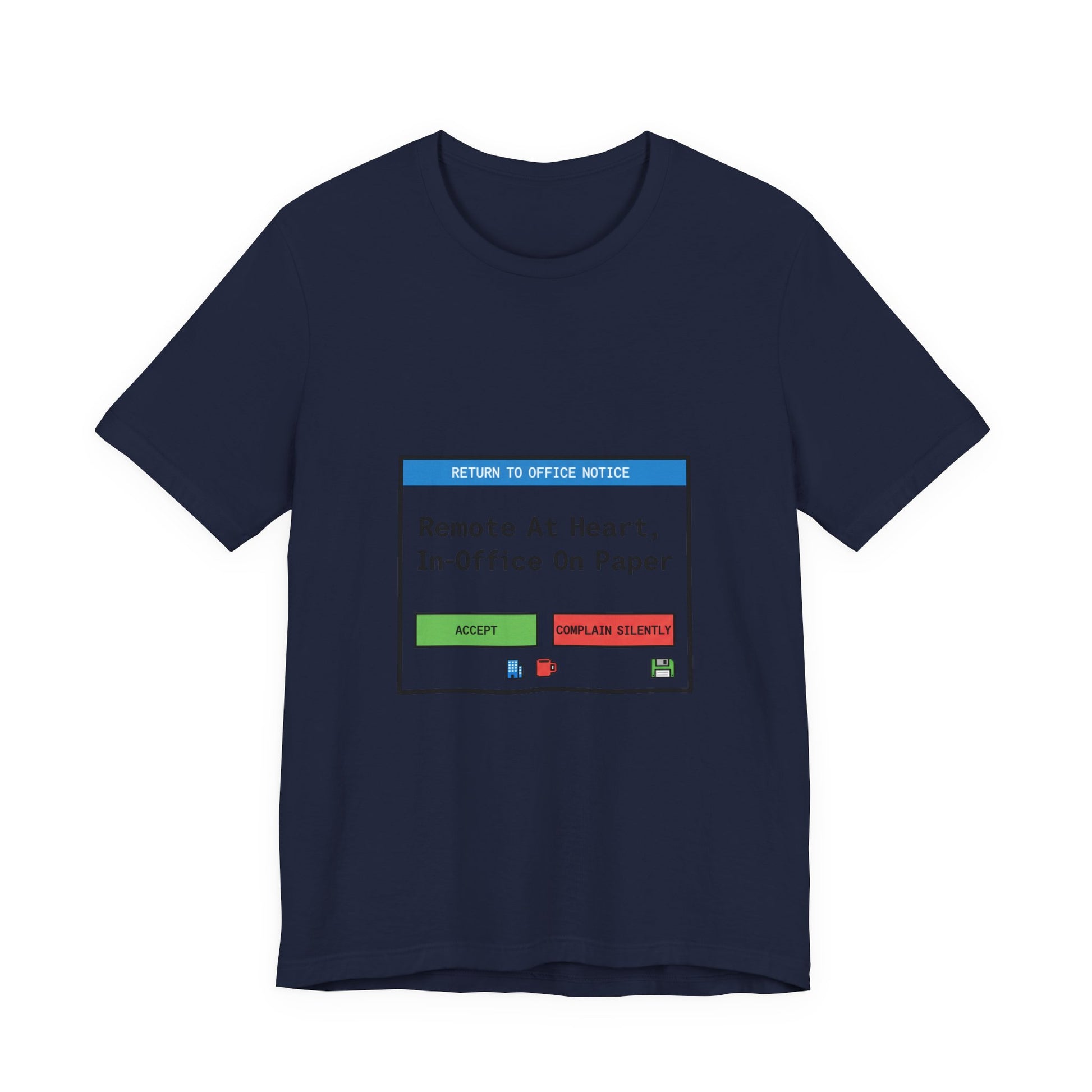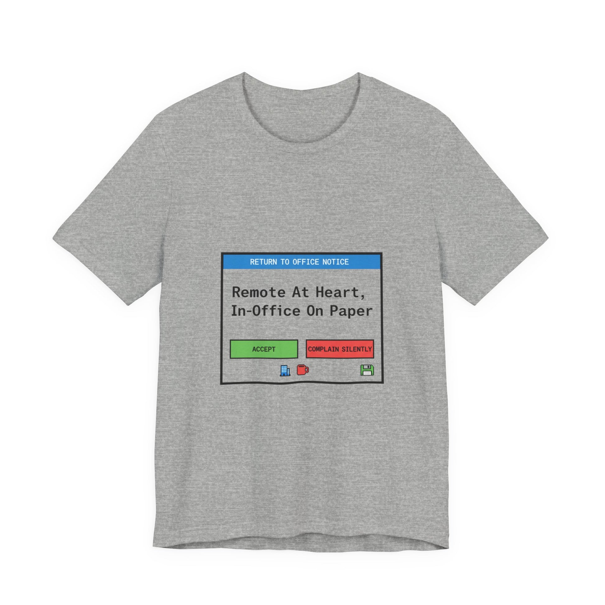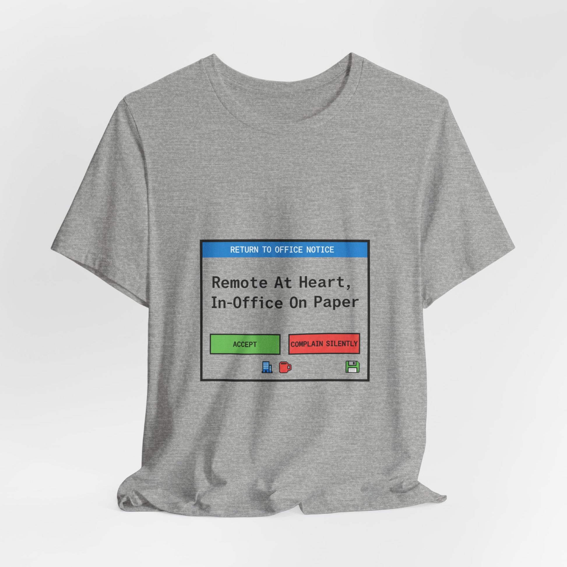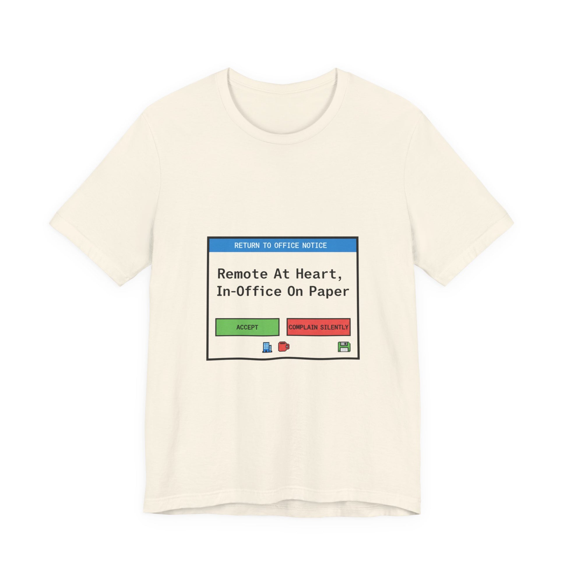 Remote At Heart In-Office On Paper Tee | 90s Computer Graphics, Corporate Satire